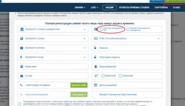 - гражданство (в букмекерской конторе 1хСтавка могут играть не только россияне, но и граждане других стан в том числе Казахстана);
