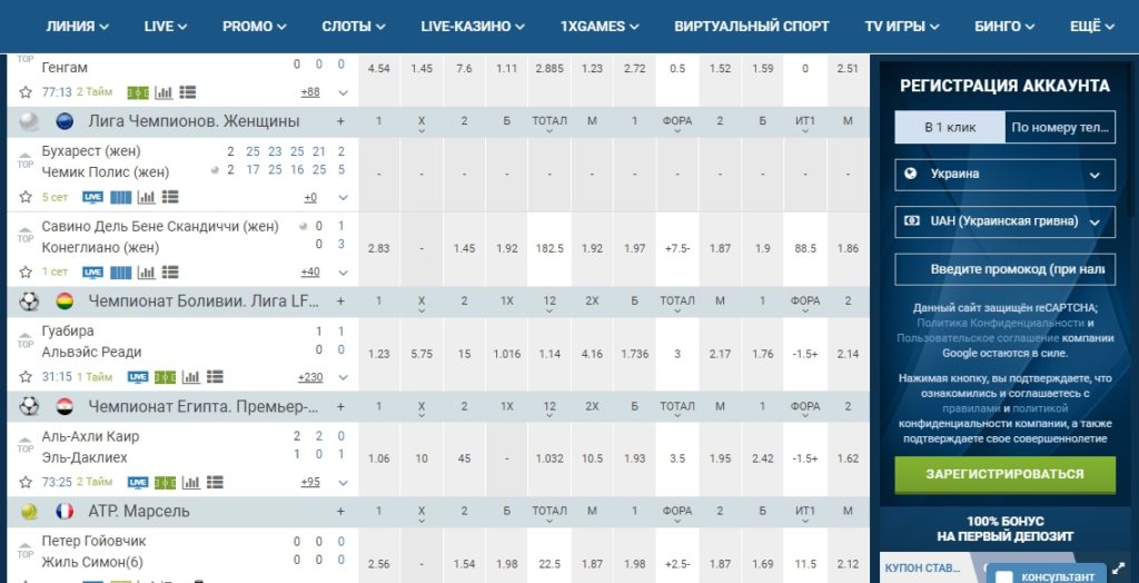 К числу сильных сторон букмекерской конторы 1хСтавка можно также отнести полноту линии и росписи, весьма высокие по российским меркам коэффициенты, регулярные акции, приятные бонусы и круглосуточную поддержку. Игра в букмекерской конторе 1хСтавка, как водится, начинается с создания учетной записи и игрового счета.